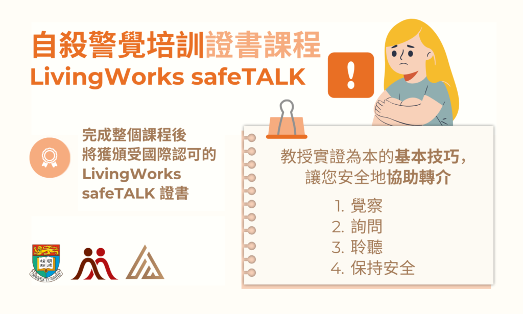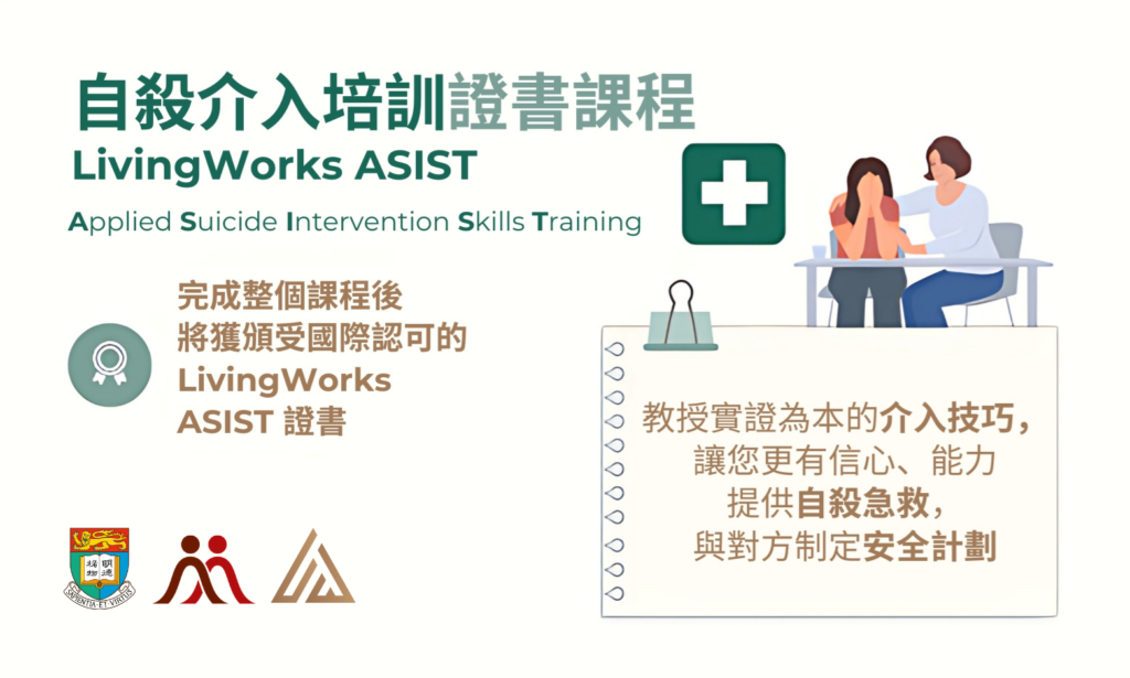 目的: | 提升參加者識別自殺的危機和保護因素,並學習如何有效回應有自殺意念的人 |